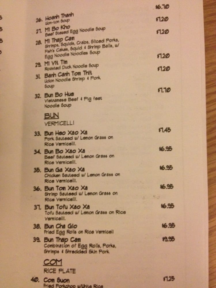 Entrees: Hủ Tiếu, Phở & Mì (Noodle Soup)